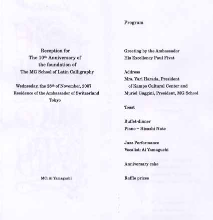 Cover of the evening's program with "FELICITATIONS" 12th century illuminated letter uFv Lombardic initials