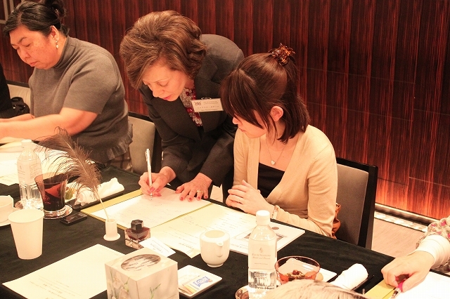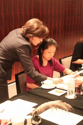 ![]() During the 2-hour session, Muriel Gaggini demonstrated several ways to pen different strokes and write elegant letters ! |