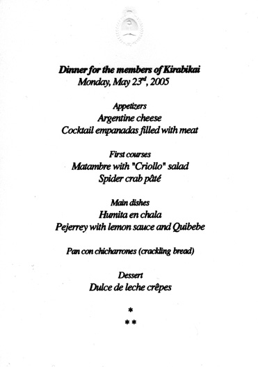 ![]() ポルスキー大使より歓迎の挨拶をいただいた後、 アルゼンチンの美味しい料理をいただきました。 |