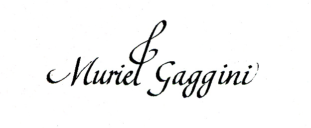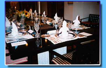 ![]() 各自のテーブルセッティングにカリグラフィーの名札と 紋章入りのメニューが用意されていました。 ![]() イタリック体のプレースカード |