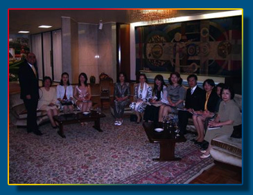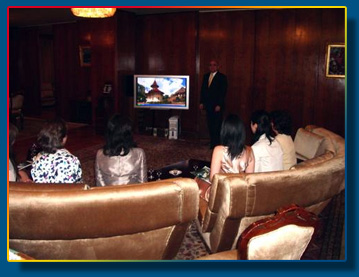 ![]() アウレリアン・ネアグ大使は、大きなモニターで ビデオやスライドを映しながら、ルーマニアの 歴史や文化、紋章の意味などをくわしくお話して くださいました。 |