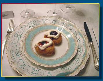 ![]() デザートは揚げ菓子にクリームとジャムがのったもの |