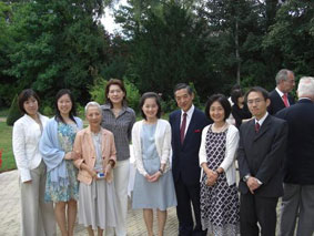 ![]() 大使公邸のお庭にて 加藤参事官・広報部 藤田氏 |