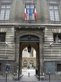 正面2階、窓の開いている部屋が 写本研究室 "Salle de lecture"です セキュリティーチェックを受けて 中に入ります |