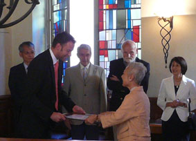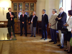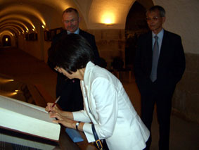 ![]() 美術館の記帳表 "Golden book" サインをする大使夫人 |