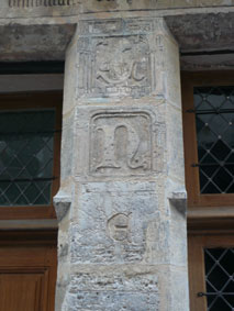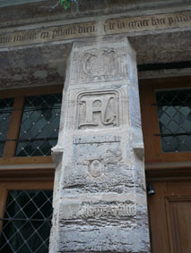 ![]() 柱に刻まれた ロンバルディックイニシャル Nicolasの「N」とFlamelの「F」 そして 錬金術のシンボル |