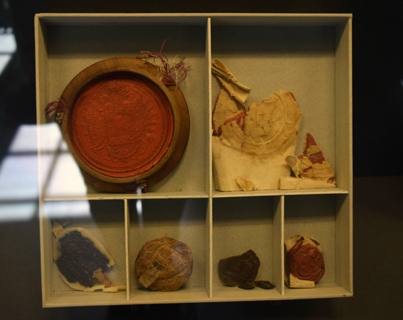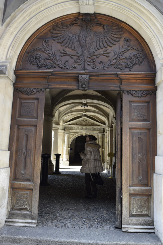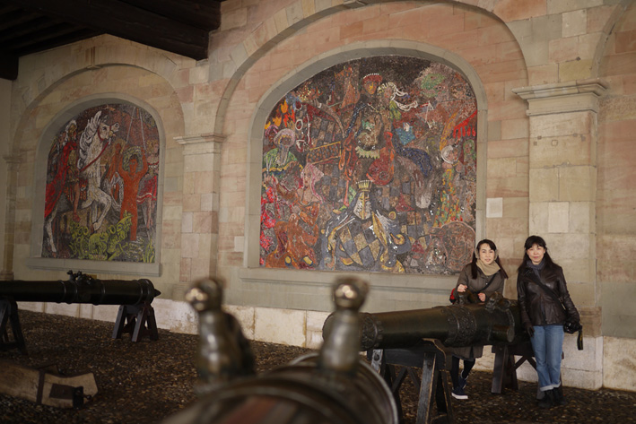 Old Arsenal - a series of canons decorated by mosaics, the one at left portraying Caesar's arrival in the city 州の公文書館の広場に18世紀の旧兵器庫があります。M. Gagginiは公文書館を案内しました。 |
