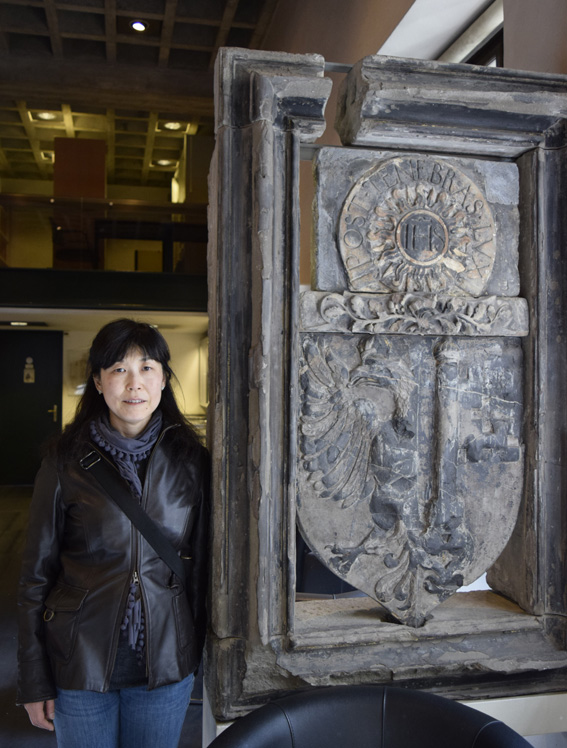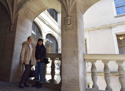 M. Gaggini and Y. Nagashima at the top of the City Hall 美しいアーケードの上り坂