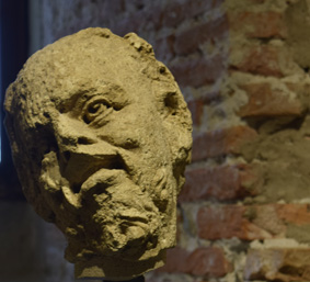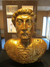 The golden bust of Emperor Marcus Aurelius was discovered マルクス・アウレリウスの黄金の像は水道配管の中で隠れていました。 |