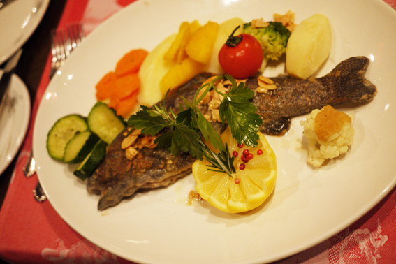![]() Local speciality: trout with almonds 伝統的なアルプスの鱒のグリル・ アーモンド添え |