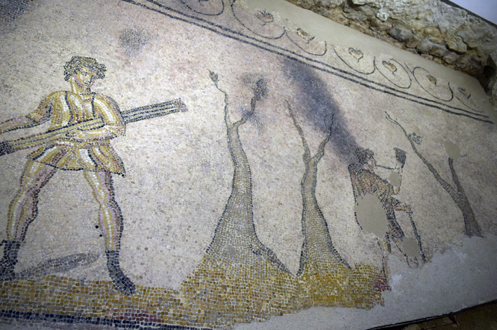 当時の狩りの様子が描かれている地面 Frames depicting hunting scenes |