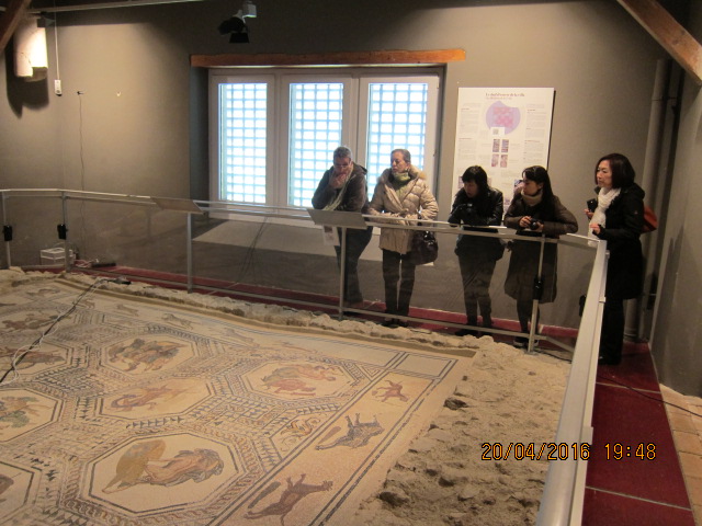 The Roman villa in Orbe is a luxurious estate which was built around 160 AD. Today it is the largest discovery of its kind in the northern region of the Alps. The villa was surrounded by walls measuring about 400 meters on each side. The house had about one hundred rooms, many decorated with exquisite mosaics. MG School's private guide Mrs. Monnier had the key to open each pavilion protecting the mosaics and tell us their stories. 紀元前58年、ユリウス・カエサルがローマへ移動するヘルウェティイ族を制圧した後、現在のスイスのほとんどの地域がローマ帝国の一部になりました。その影響として、それまで文字を持たなかったアルプスにローマのアルファベットがもたらされました。 オールブにあるローマのヴィラは紀元160年頃に建てられた優雅な屋敷で、北アルプス地域に於ける現在までの最大の発見といわれます。当時、ヴィラの周りの壁のそれぞれの長さは 400 メートルに達し、100もの部屋の一部には、美しいモザイクが施されていました。MGスクールのプライベート ガイド、モニエーさんはモザイクを保護するパビリオンの鍵を持って、私たちに各モザイクの物語を説明してくれました。 |