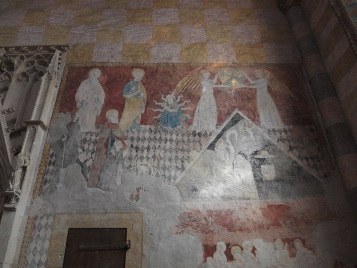 壁に描かれた後援者達の紋章 Wall bearing the coat of arms of benefactors |