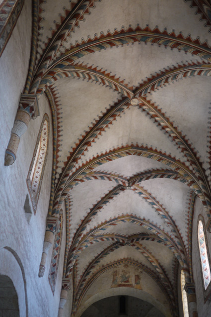 Between 990 and 1028 in the Kingdom of Burgundy, a Cluniac priory was built in the village of Romainmotier. It is located in the canton of Vaud and is a cultural property of national significance as one of the oldest Romanesque monasteries of Western Switzerland. From the 12th century paintings adorned the wall of the priory church and the coat of arms of aristocratic families have been added in the following centuries. Following a fire during the 12th century, the ceiling was rebuilt with arches in the Gothic style. 990年と1028年の間にブルグント王国にあるロマンモーティエの村でクリュニー会派の大修道院が建てられました。 |