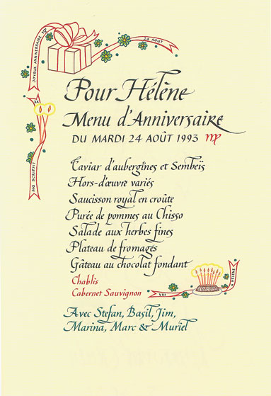 Birthday celebration menu