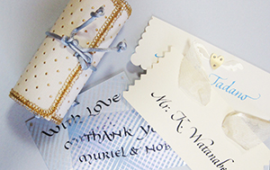 この幸せいっぱいの日を特別な思い出にするためにエレガントな作品を順番に作成しましょう。 新郎新婦のモノグラムの作り方を練習します。 又、招待状のエチケットやカリグラフィーの記念品のデザインを習います。 インスピレーションを働かせて、紙や招待状の色、様々な札、ご祝儀袋、プレゼントを選ぶ方法を教えます。 これをきっかけにしてカリグラフィーアートを、結婚式の舞台に登場させましょう。 準備するもの: ペン先(数種類)、インク、A4・B5サイズのカラー用紙(10-20枚程度)、マスキングテープ、スティックのり、一般的なカリグラフィー用具、ガッシュ絵の具、パレット(梅皿)、筆、カッター、定規、トレーシングペーパー、薄水色の鉛筆、方眼紙、コンパス 、白・又はオフホワイトのリボン。 |
